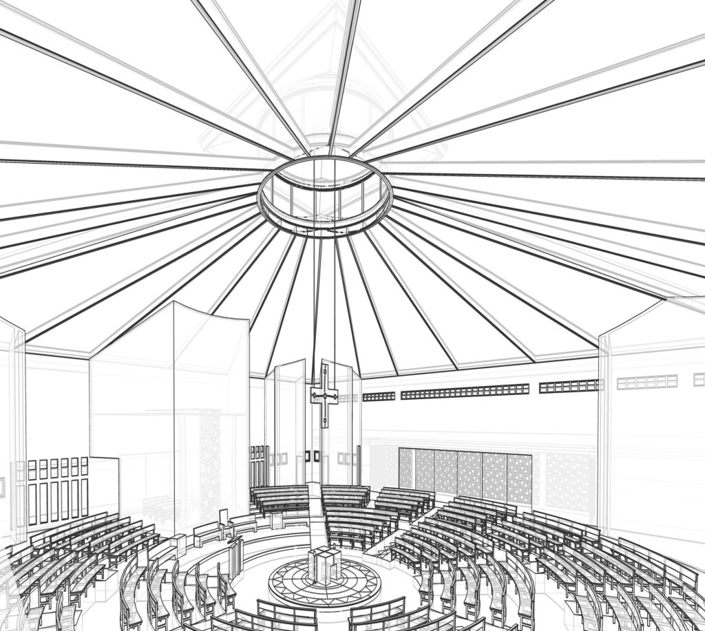 Buscamos facilitar e tornar prático o projeto para construções e reformas dos espaços celebrativos das comunidades. Os projetos são elaborados a partir da escuta atenta das demandas das comunidades. Em sintonia com as orientações da igreja e a partir das celebrações buscamos oferecer espaços belos, nobres, dignos. Cuidamos para que a beleza não seja um aparato que se adiciona a arquitetura mas decorra dela e da própria simbologia implícita em cada sacramento que é celebrado. Entendemos que o espaço é uma matriz espiritual na qual os cristãos são moldados e através do qual lhes é possibilitado o encontro com o sagrado.