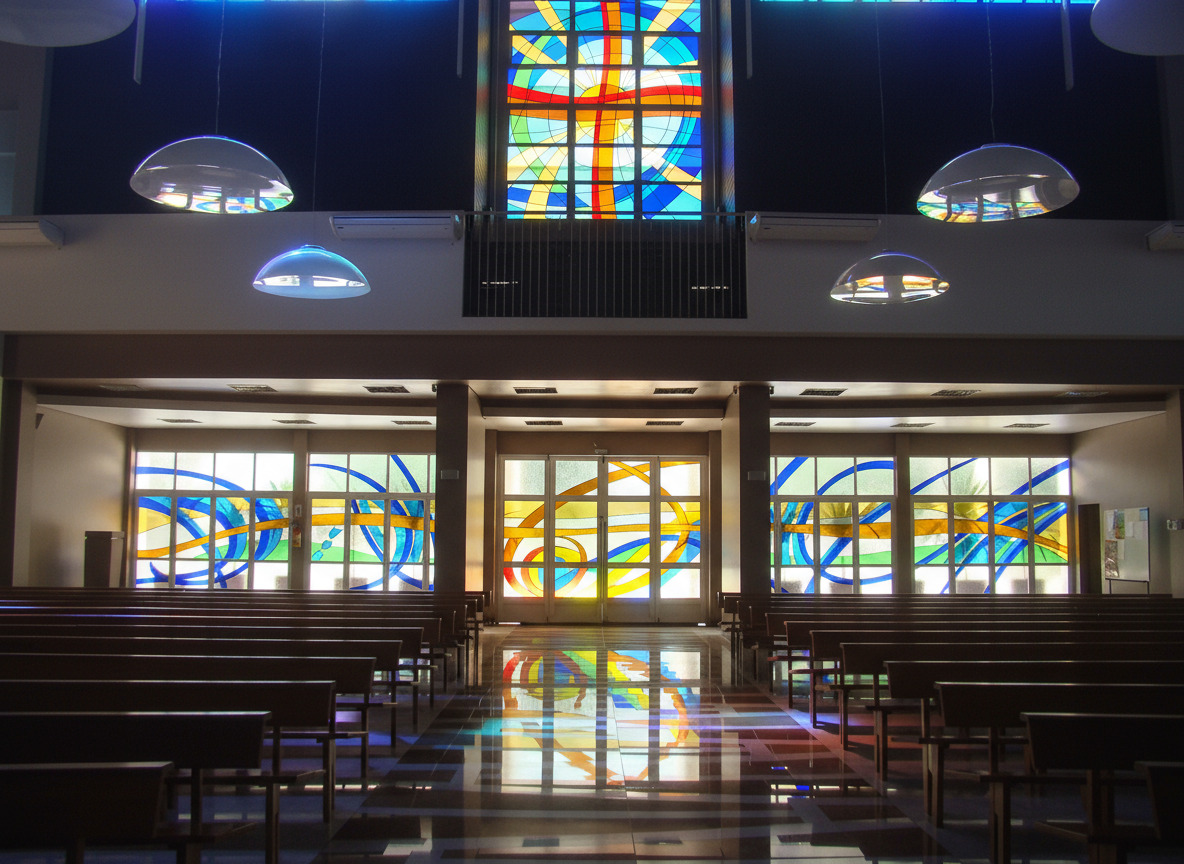 A luz no edifício-igreja possui valor metafísico e teológico; embora excite os sentidos, gera um espetáculo que é a manifestação do mistério. Os vitrais são portanto, um elemento importante e identificador do espaço sagrado; fascinam, solenizam, sugerem e contribuem para a desmaterialização do próprio espaço, tornando-o simbolo da Jerusalém do céus.