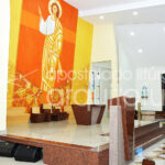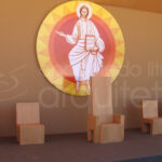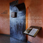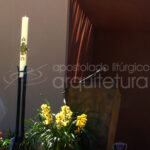 projeto do espaço litúrgico – mobiliário – painel artístico – relicário – paramentos.