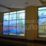 Projeto para vitrais em Oratório do Centro de Espiritualidade FlosCarmeli – Via puragativa, Via iluminativa e Viaunitiva.