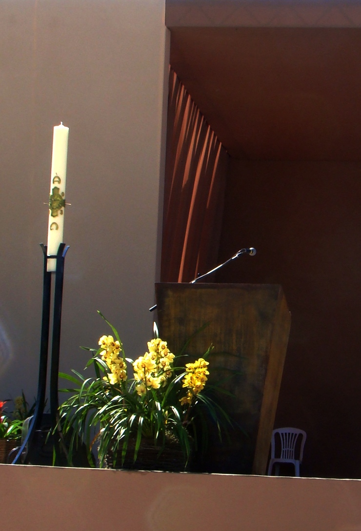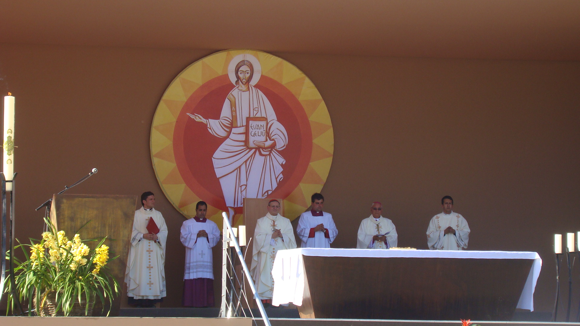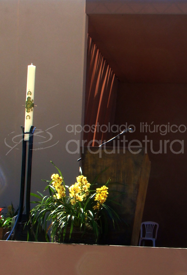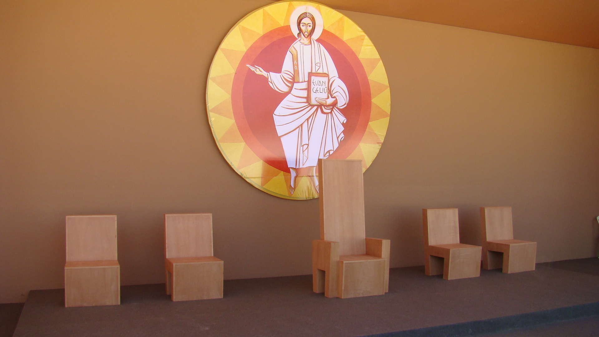 projeto do espaço litúrgico – mobiliário – painel artístico – relicário – paramentos.