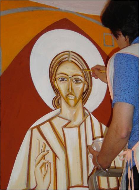 Pintura de painel em capela do colégio N. Senhora Consolata.
