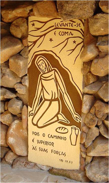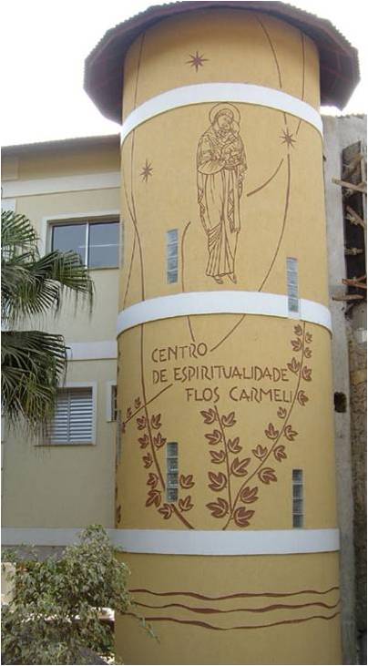 Painel em baixo relevo na área externa do Centro de Espiritualidade FlosCarmeli.